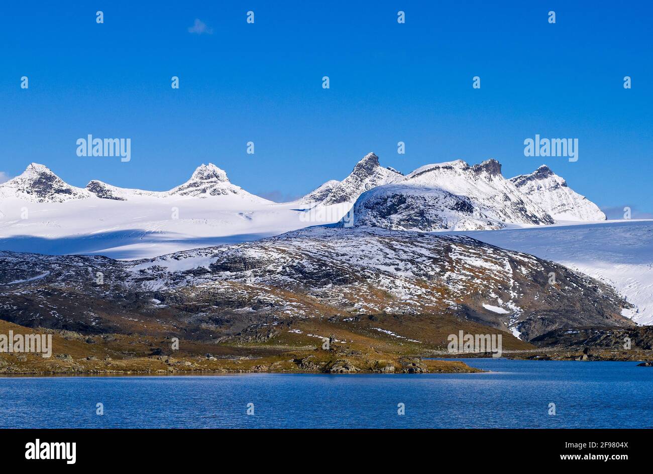 Das Gebiet umfasst die beiden höchsten Berge Norwegens Galdhøpiggen und Glittertind sowie einige Wasserfälle Flüsse und Seen. Jotunheimen bedeutet Heim der Riesen und ist ein unberührtes Berggebiet in Ostnorwegen.