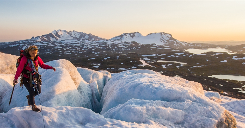 Jotunheimen is home to some spectacular glaciers such as Falketind and Uranostind. Auf Ihrer Reise quer durch das höchste Gebirge Skandinaviens erleben Sie den nordischen Landschaftszauber in seiner vollen Pracht. Wandern im wilden Jotunheimen Nationalpark.
