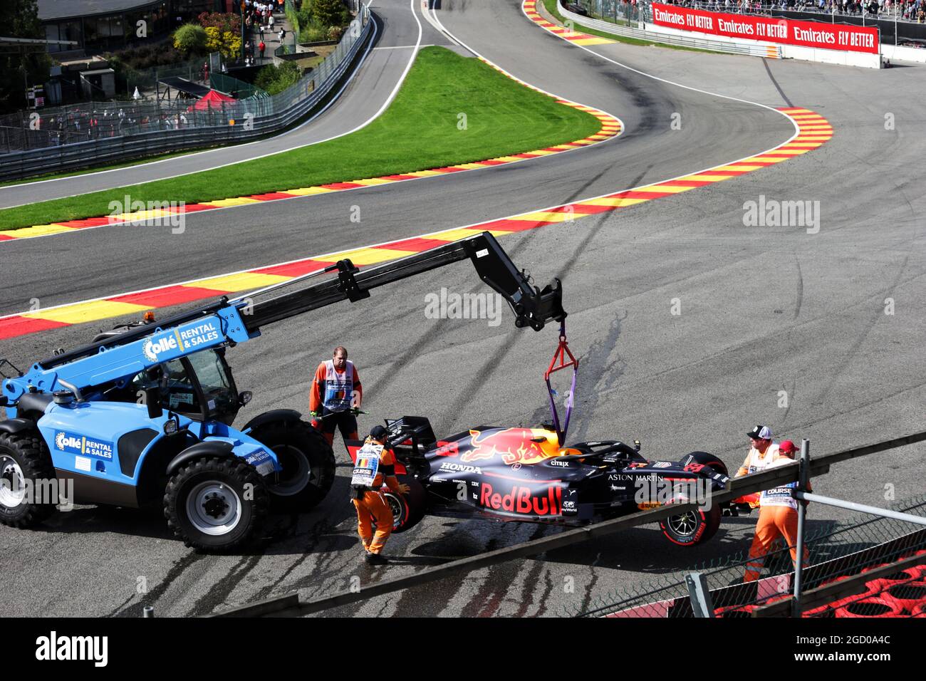 Liege Belgium 27th Aug 2021 Max Verstappen Nld Red Bull Racing Rb16b Crashed In The Second Practice Session 27 08 2021 Formula 1 World Championship Rd 12 Belgian Grand Prix Spa Francorchamps Belgium Practice